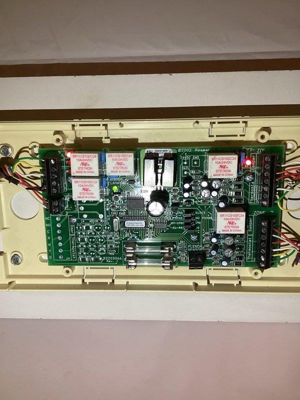 Responded to service call for non-functioning furnace. Inspected the control board and found it operational with all indicator lights functioning properly. Verified proper relay operation and electrical connections. System is now operating within normal parameters.