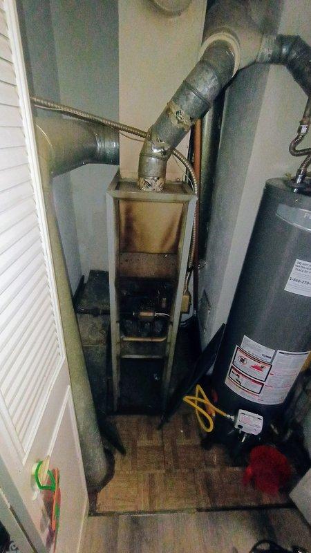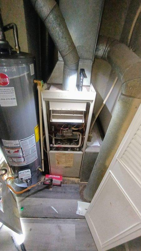Responded to no heat service call for system less than 10 years old. Upon inspection of furnace unit in utility closet, identified corrosion at metal ductwork joints affecting proper airflow. Performed necessary repairs to restore heating functionality and ensure safe operation of the system.