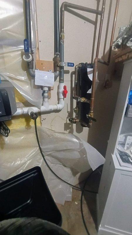 Conducted on-site assessment for water softener installation where customer has already purchased the unit. Existing plumbing infrastructure is in place from previous water softener, including copper and PVC pipes with accessible shutoff valves. Evaluated current configuration and confirmed compatibility with new unit without need for significant modifications.