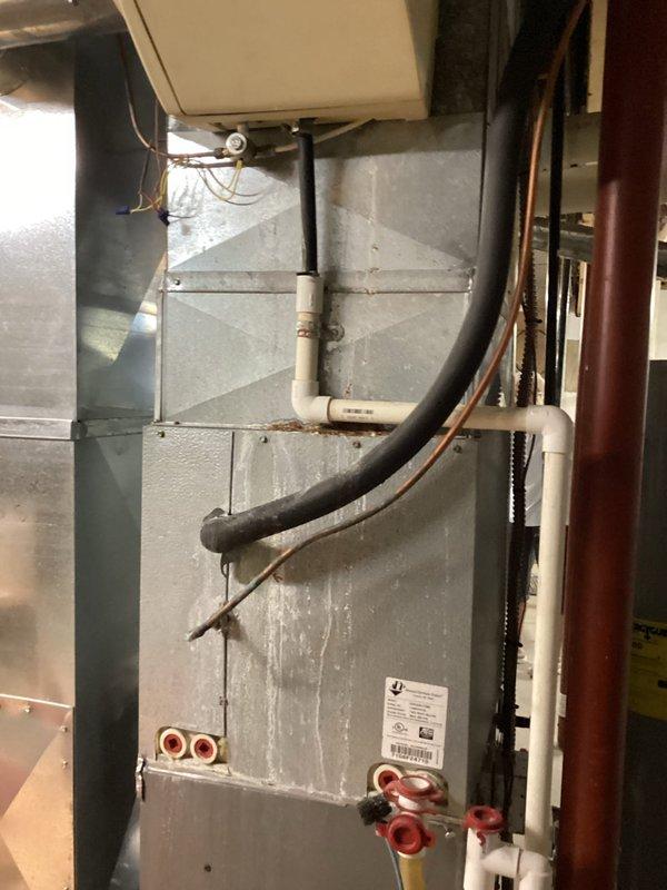 Conducted comprehensive HVAC replacement estimate for 14-year-old system with suspected refrigerant leak. Evaluated existing furnace installation in basement mechanical room, assessed galvanized ductwork configuration running through structural framing, and documented current system specifications including gas line connections and vertical/horizontal duct runs. Discussed multiple equipment options including standard forced air, ductless systems, and package units, and reviewed available financing programs to facilitate replacement of aging equipment.