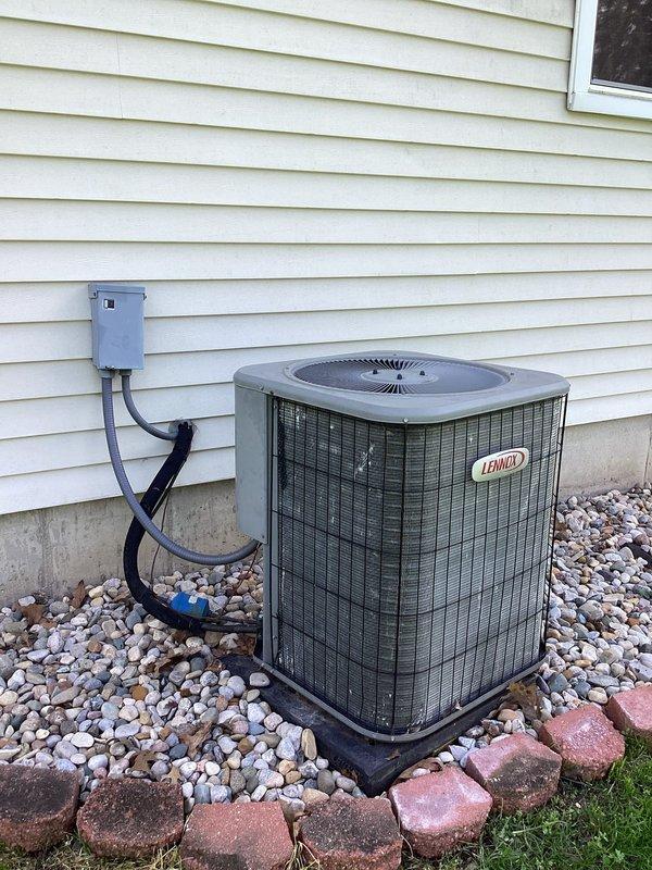 Completed comprehensive HVAC tune-up and inspection on residential Lennox air conditioning unit as part of promotional maintenance service. Performed full system evaluation including electrical connections at disconnect box, refrigerant levels, condenser coil inspection, and operational testing to ensure optimal performance for the cooling season.